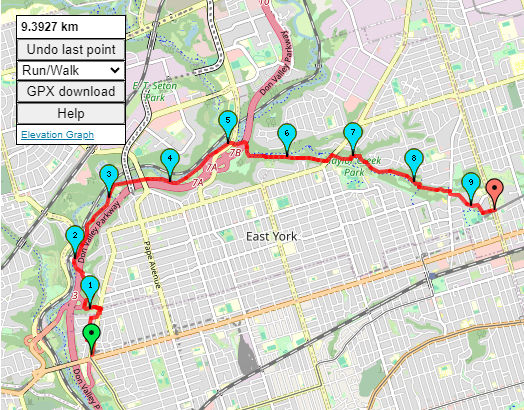 DISTANCE: 10 km PACE: 5 km/h DIFFICULTY: D3 (Distance, some narrow trails) This hike will be along a mix of pavement, gravel and dirt paths. We will go along some paved paths and then switch to narrow trails to make it interesting. Potentially some muddy sections. This is the route we will take.