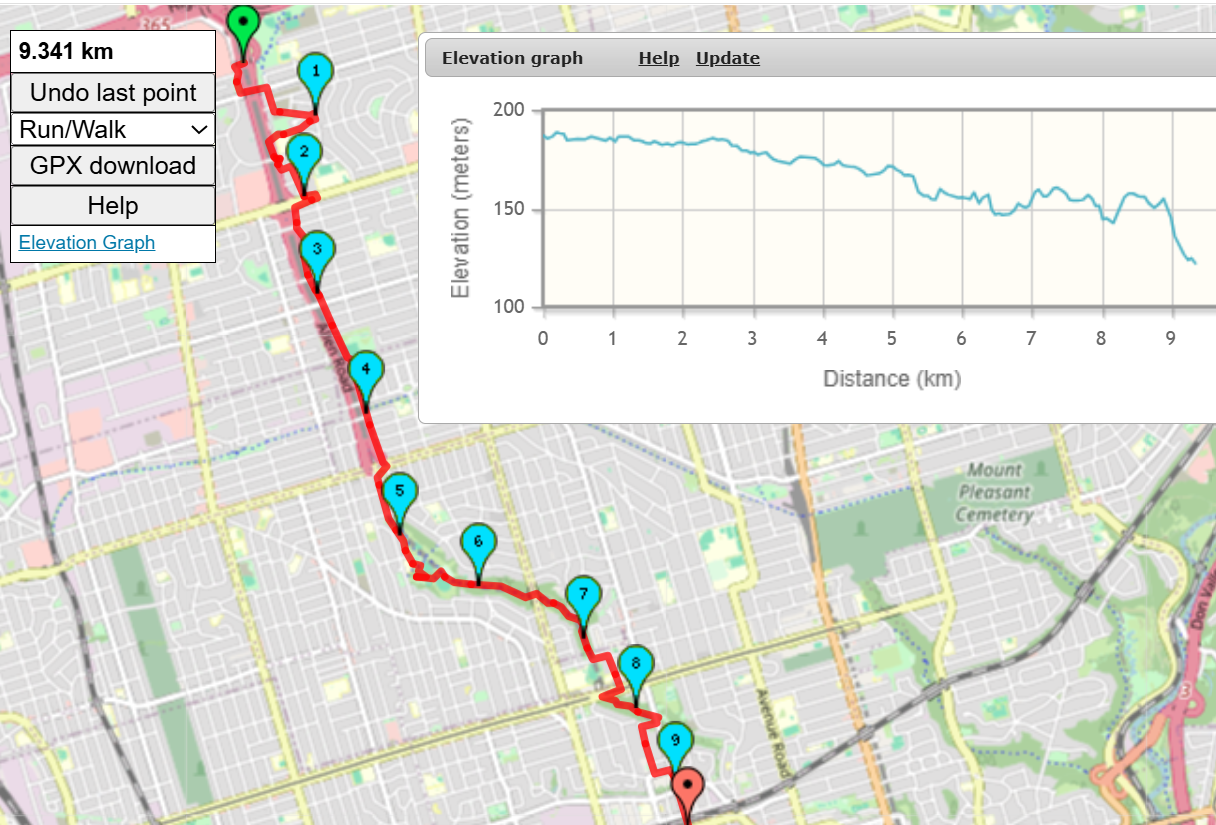 So, the random hike picker has selected this urban hike for this evening. This 9.5 KM hike will start at Yorkdale Station
