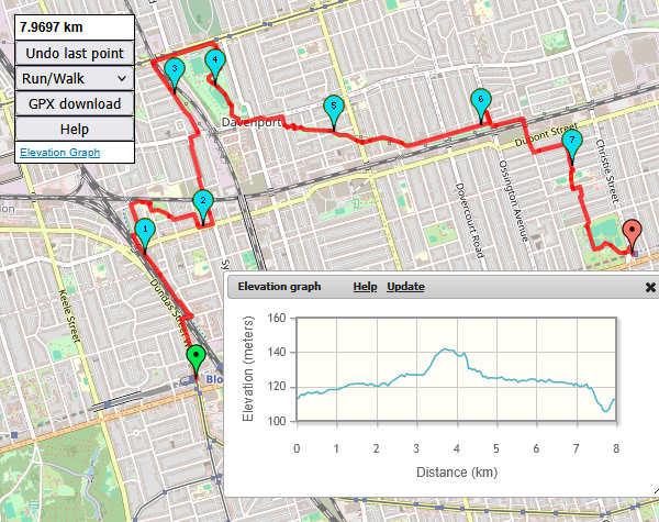 So, the random hike picker has selected this urban hike for this evening. This 8 KM hike will start at Dundas West Station and end at Christie Station. The hike will be on a combination of sidewalks, paved park paths, grassy fields and single track trails. In terms of hills, there aren't any over 25 meters. I'll attempt to stop for a washroom break at the Joseph J. Piccininni Community Centre located about 4 KM into the hike. Post hike, I might head over to Tallboys for a pint if anyone would like to join. | |||||||