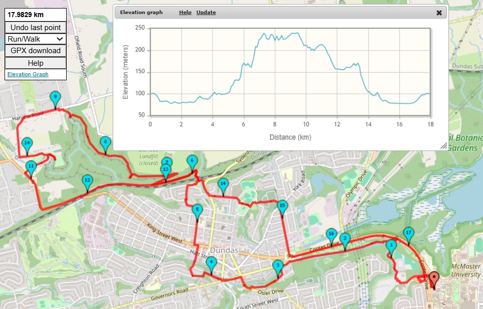 This 19 KM figure 8 hike will both start and finish at Mcmaster Go Bus Station. Please bring a lunch and at