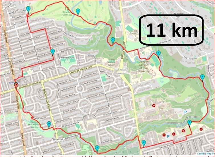 DISTANCE: about 11 km PACE: about 4.5 km/h DIFFICULTY: D3 WASHROOMs: ? TBD ICERS: we may need icers for this hike. Be prepared. You should keep icers in your pack during the winter months. we will be doing some exploration! between km 2 to 4.5 that part of this hike will be new to me, specifically Rosedale Golf Course and the path that connects it to the bottom of the big Lawrence hill (which we will not be ascending) we will start and end at Lawrence station the hike will be on a mix of sidewalk, golf course, and ravine trails For an interactive Route Map CLICK HERE for route 996033 | |||||||