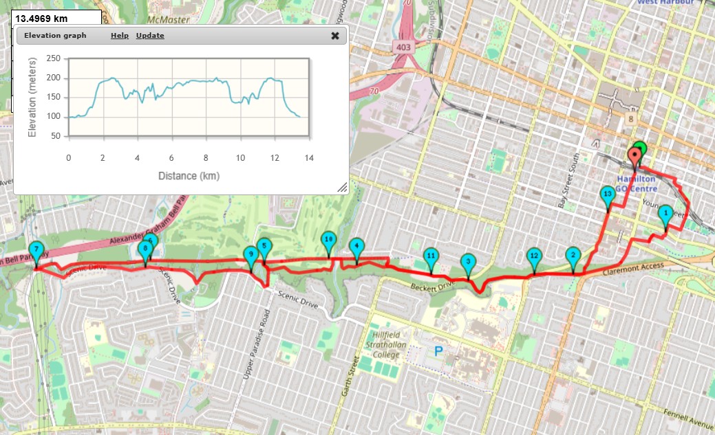 This 14.5 KM figure 8 hike will both start and finish at Hamilton Centre Go Station. Please bring a lunch and at