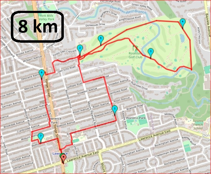 DISTANCE: about 8 km PACE: about 4.5 km/h DIFFICULTY: D3 WASHROOMs: Loblaws at 6 km SNACK BREAK: somewhere on the trail when we get hungry ICERS: we may need icers for this hike. Be prepared. You must keep icers in your pack during the winter months. Let's try for a 3rd time to hike on the Rosedale Golf Course. If it is not open to the public, then we will do a modified route we will start and end at Lawrence station the hike will be on a mix of sidewalk, golf course (hopefully), and laneways Plan A interactive Route Map CLICK HERE for route 997918 | |||||||