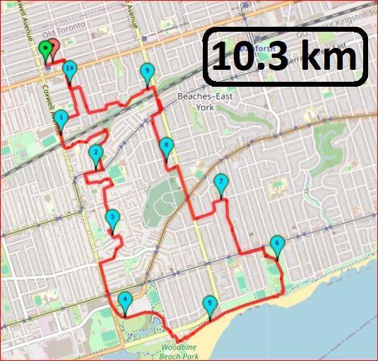 DISTANCE: about 10.3 km PACE: about 4.5 km/h DIFFICULTY: D3 WASHROOMs: at Shoppers near hike start, and Woodbine Beach this hike will start and end at Coxwell Subway