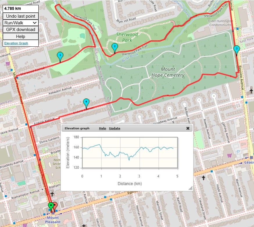 So, the random hike picker has selected this urban hike for today. This 5 KM hike will both start and finish at Mount Pleasant Station. The hike will be on a combination of sidewalks, paved cemetery roads, gravel trails and single track dirt trails. In terms of hills, there should be one climb of about 25 meters. I'll attempt to stop for a washroom break at 1.5 KM into the hike in Sherwood Park. Please be advised that Mount Hope Cemetery doesn't allow dogs, so I cannot take them on this hike. Post hike, I might head over to Granite Brewery for a pint if anyone would like to join. | |||||||